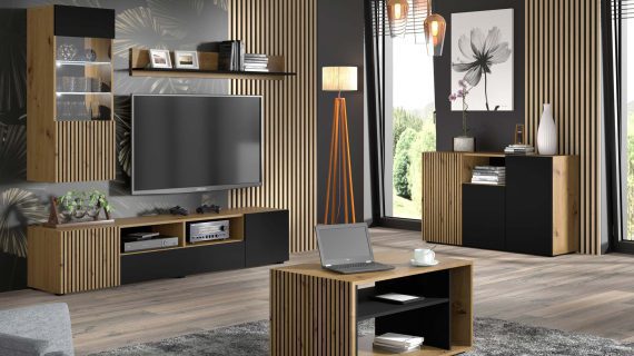 Zobacz, jak jeden mebel może wprowadzić do Twojego salonu ciepło, spokój i perfekcyjną organizację. Szafka RTV MERVE to połączenie naturalnego wdzięku drewna z nowoczesną czernią, które tworzy wyjątkowy klimat – zarówno w industrialnych, jak i rustykalnych wnętrzach. Jej przemyślany design i pojemne wnętrze sprawiają, że jest nie tylko pięknym dodatkiem, ale i funkcjonalnym centrum codziennego życia. To mebel, który mówi: „Tu naprawdę mieszkam”.