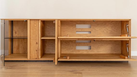 Elegancka Komoda TV z Przeszkleniem Zenovia – Połączenie Tradycji z Nowoczesnością