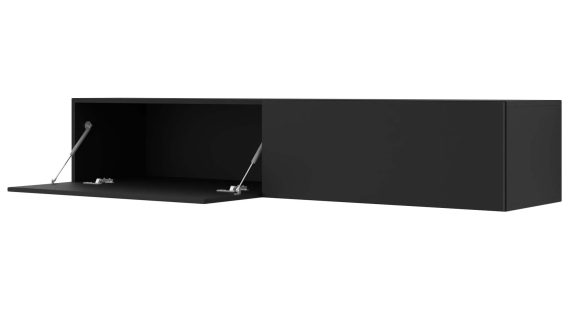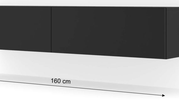 Mebel zawiera dwie sekcje otwierane w dół – idealne do przechowywania dekoderów, konsol, dokumentów czy nawet ładowarek. Dzięki szerokości 160 cm oferuje naprawdę dużo miejsca, nie zajmując jednocześnie wizualnej przestrzeni. Wykonana z laminowanej płyty meblowej 16 mm i elementów z MDF, jest trwała, odporna na zabrudzenia, zarysowania i wilgoć – to nie tylko estetyka, ale też życiowa funkcjonalność.
