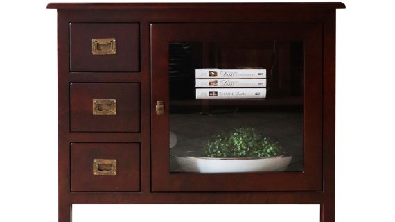 Oferowana Mała Drewniana Szafka RTV z Przeszkleniem MENDOZ to solidny mebel, który doskonale sprawdzi się we wnętrzu salonu. Szafkę wyposażono w trzy małe szuflady idealne do przechowywania rożnego rodzaju drobiazgów. Ponadto posiada także przeszklone drzwiczki, a w ich środku znajduje się półka. Mebel ten to więc przemyślana propozycja przechowywania sprzętu i akcesoriów RTV.