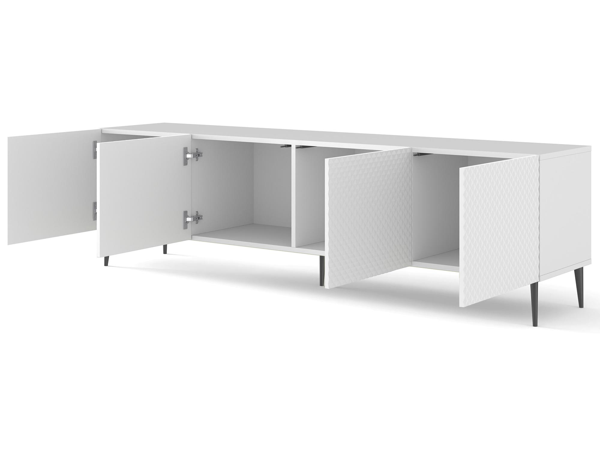 • Stabilność: Metalowe nóżki zapewniają szafce solidność i stabilność, co jest niezwykle ważne przy przechowywaniu cennego sprzętu RTV.
