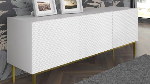 - Elegancki design: Biały matowy korpus i fronty w wysokim połysku w połączeniu ze złotymi, metalowymi nóżkami typu szpilki tworzą harmonijną i stylową całość, która doskonale wpisuje się w najnowsze trendy wnętrzarskie.