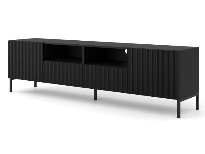Szafka RTV Mare oferuje wiele praktycznych rozwiązań. Dzięki wymiarom 200/42/56 CM, idealnie sprawdzi się w różnych pomieszczeniach, zapewniając miejsce na przechowywanie sprzętu RTV, książek, dekoracji oraz innych akcesoriów. Przemyślana konstrukcja szafki umożliwia wygodne rozmieszczenie urządzeń elektronicznych i organizację kabli, co pomaga utrzymać porządek i estetyczny wygląd salonu.
