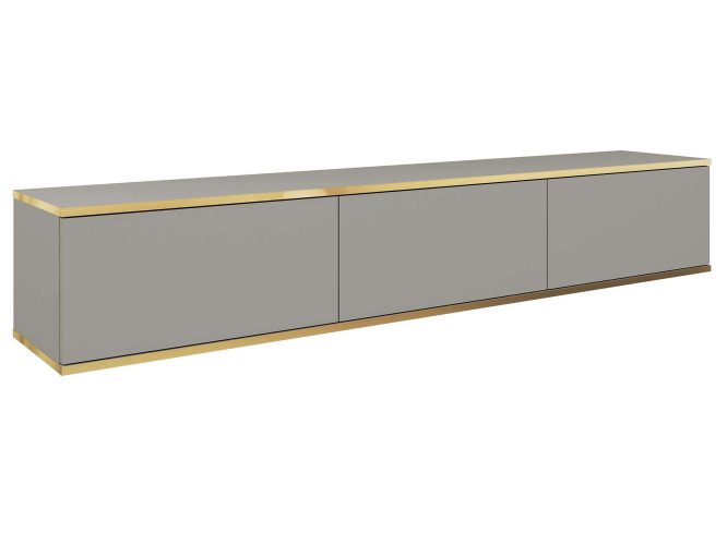 - Eleganckie akcenty: Złote listwy subtelnie podkreślają horyzontalną formę szafki, wprowadzając nutę luksusu i wyrafinowania.