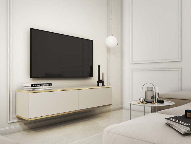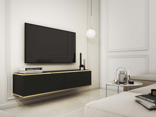 Szafka RTV Teyser z Złotymi Listwami Elegancja – Nowoczesność i Styl w Twoim Domu