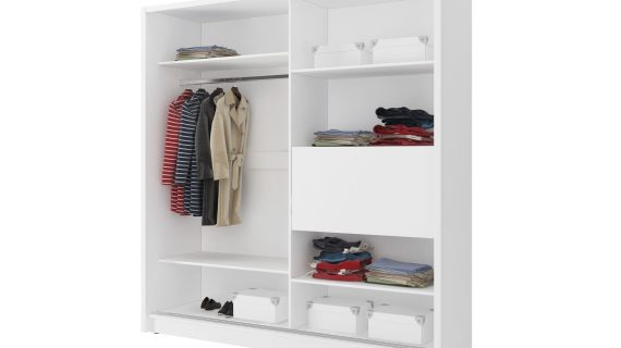 Funkcjonalna szafa HESTA wyposażona w dwoje przesuwnych drzwi za, którymi z łatwością przechowasz większą ilość ubrań. Dodatkowym atutem jest umieszczone na froncie lustro, Które optycznie powiększy pomieszczenie w którym stanie szafa.