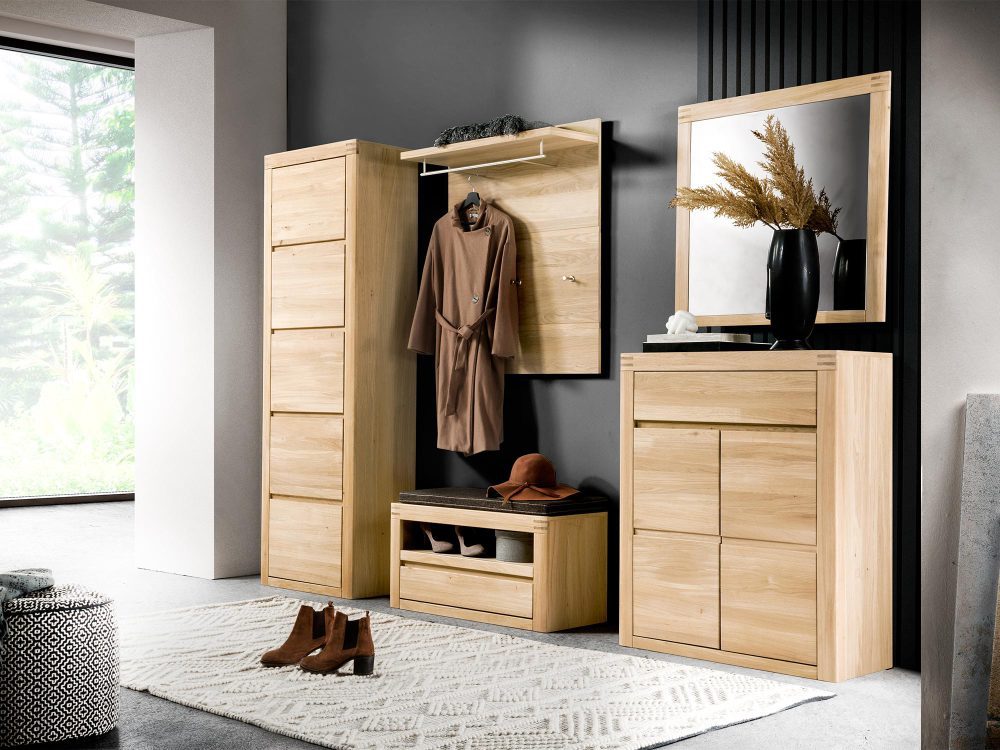 - Front z masywnego dębu sęcznego: Nie tylko podkreśla unikatowy charakter szafy, ale również dodaje wyrafinowania każdej przestrzeni.