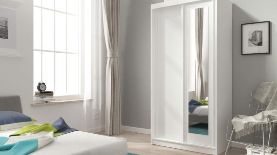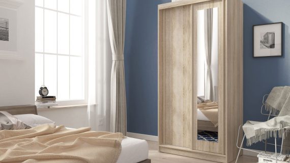 Nowoczesna dwudrzwiowa szafa z lustrem PROZERPIA 100cm posiada parę drzwi przesuwnych, na jednych drzwiach zamontowano lustro. Dodatkowo we wnętrzu szafy znajduję się półka oraz drążek na ubrania. Ponadto szafa wykonana z płyty laminowanej, i listwy z płyty MDF. Co więcej korpusy szafy oklejone są obrzeżem ABS tak, by szafa była w w pełni odporna na codzienne użytkowanie.