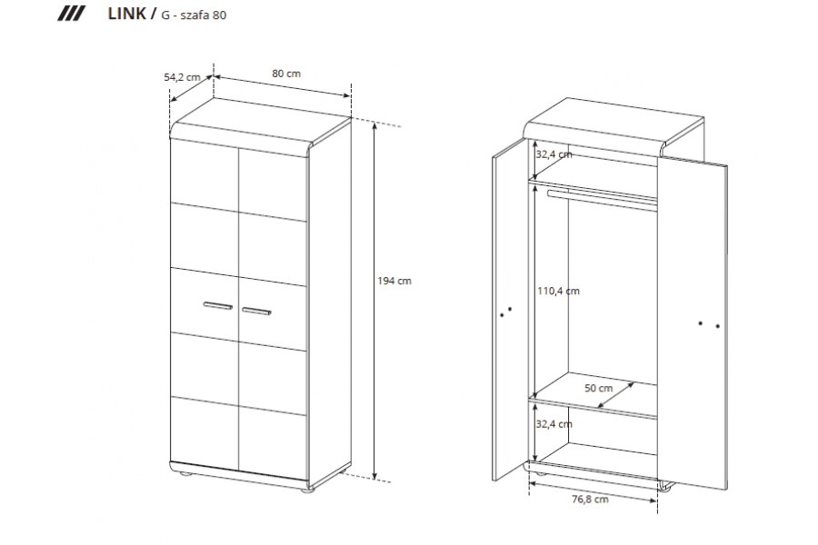 | Wymiary | 50 × 80 × 194 cm |