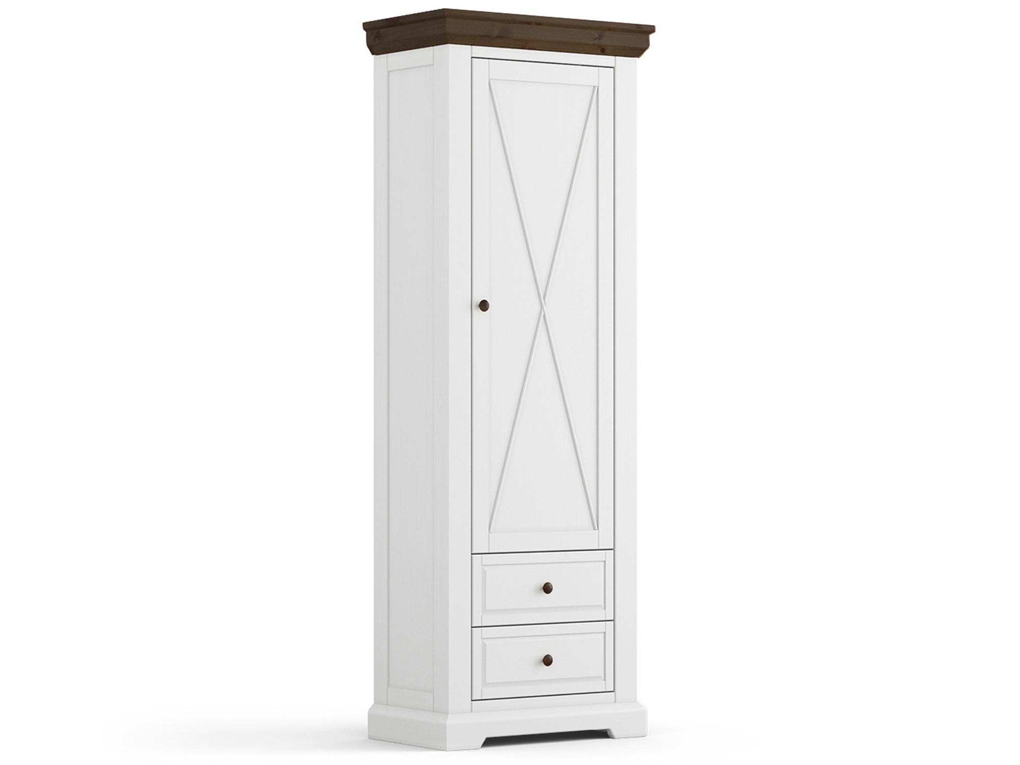 Szafa Petra, mimo swojej wąskiej konstrukcji (200 cm wysokości, 70 cm szerokości, 42 cm głębokości), oferuje wiele możliwości przechowywania. Dzięki jednej drzwiczce oraz dwóm szufladom, jest doskonałym rozwiązaniem zarówno do przechowywania ubrań, jak i butów. Dodatkowo, drewniane uchwyty dodają jej subtelnej, rustykalnej elegancji.