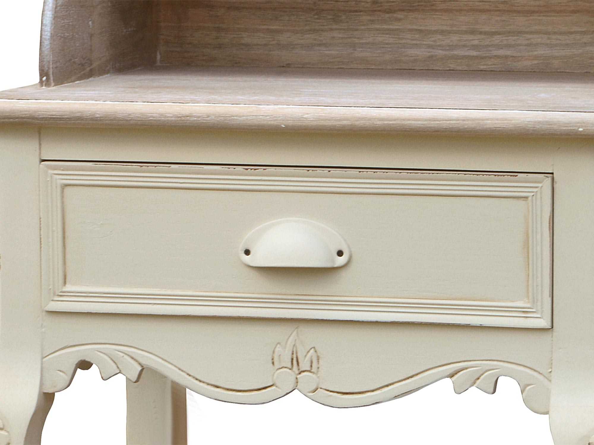 Szafka prowansalska Sorrento to elegancka i funkcjonalna ozdoba wnętrza, która z pewnością przyciągnie wzrok w Twoim domu. Wykonana z drewna paulowni w kremowym kolorze, z przecieranym jasnobrązowym blatem, doskonale komponuje się w klasycznych i rustykalnych przestrzeniach. Dzięki metalowym uchwytom w kształcie muszelek oraz giętym nóżkom, szafka nabiera wyjątkowego, prowansalskiego charakteru. To mebel, który zapewni nie tylko praktyczne przechowywanie, ale także doda klasy i uroku Twojemu wnętrzu.