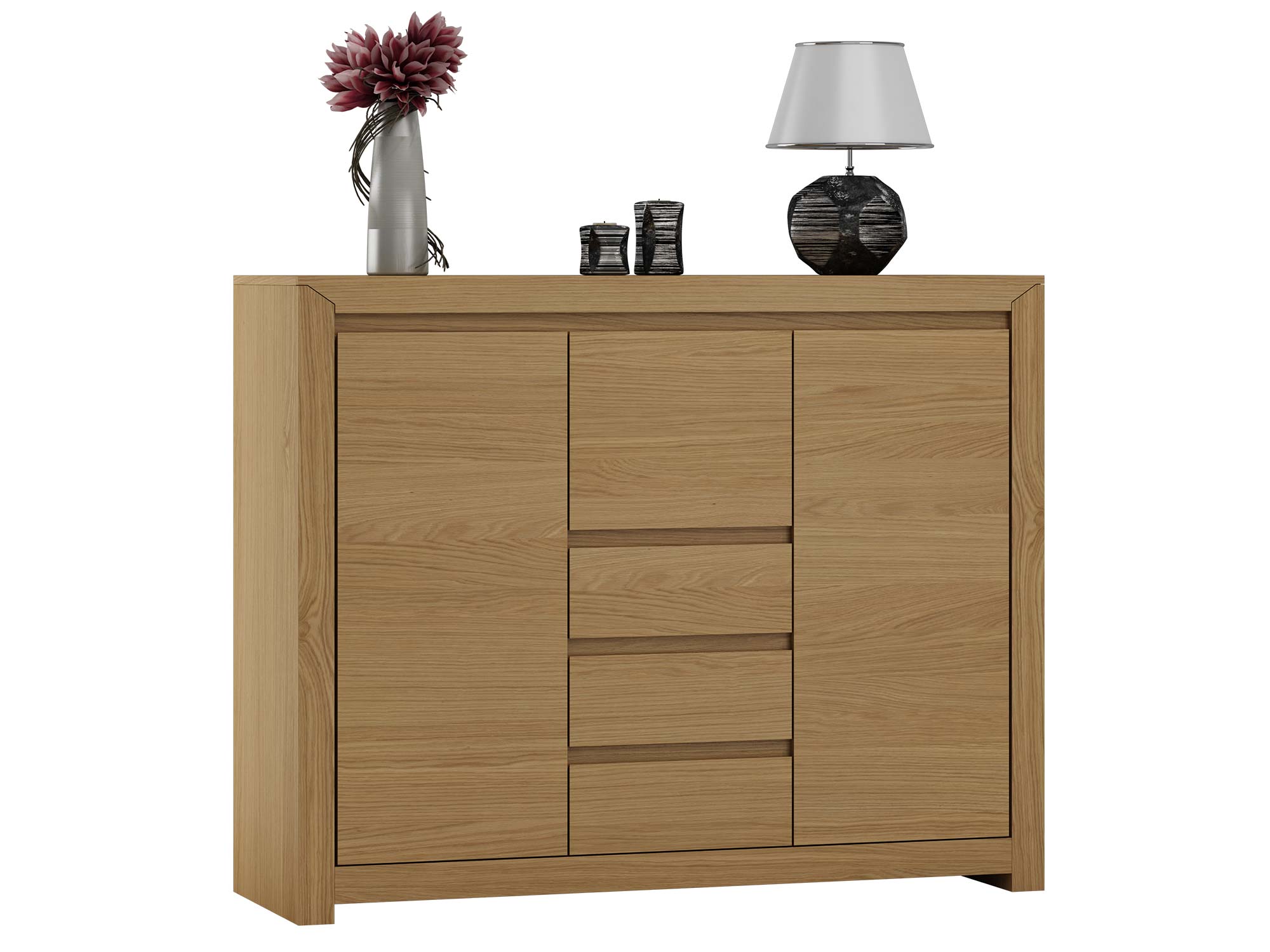 • Elegancki design – geometryczne kształty i wykończenie w kolorze dębu alpejskiego.
