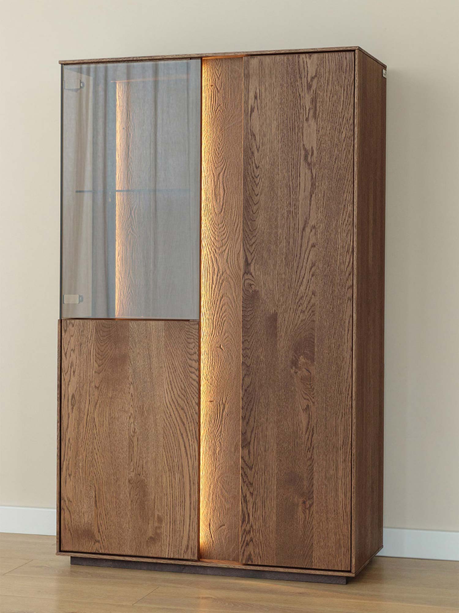 - Elegancka ekspozycja – przeszklone półki z podświetleniem LED idealnie wyeksponują porcelanę, szkło czy dekoracje.