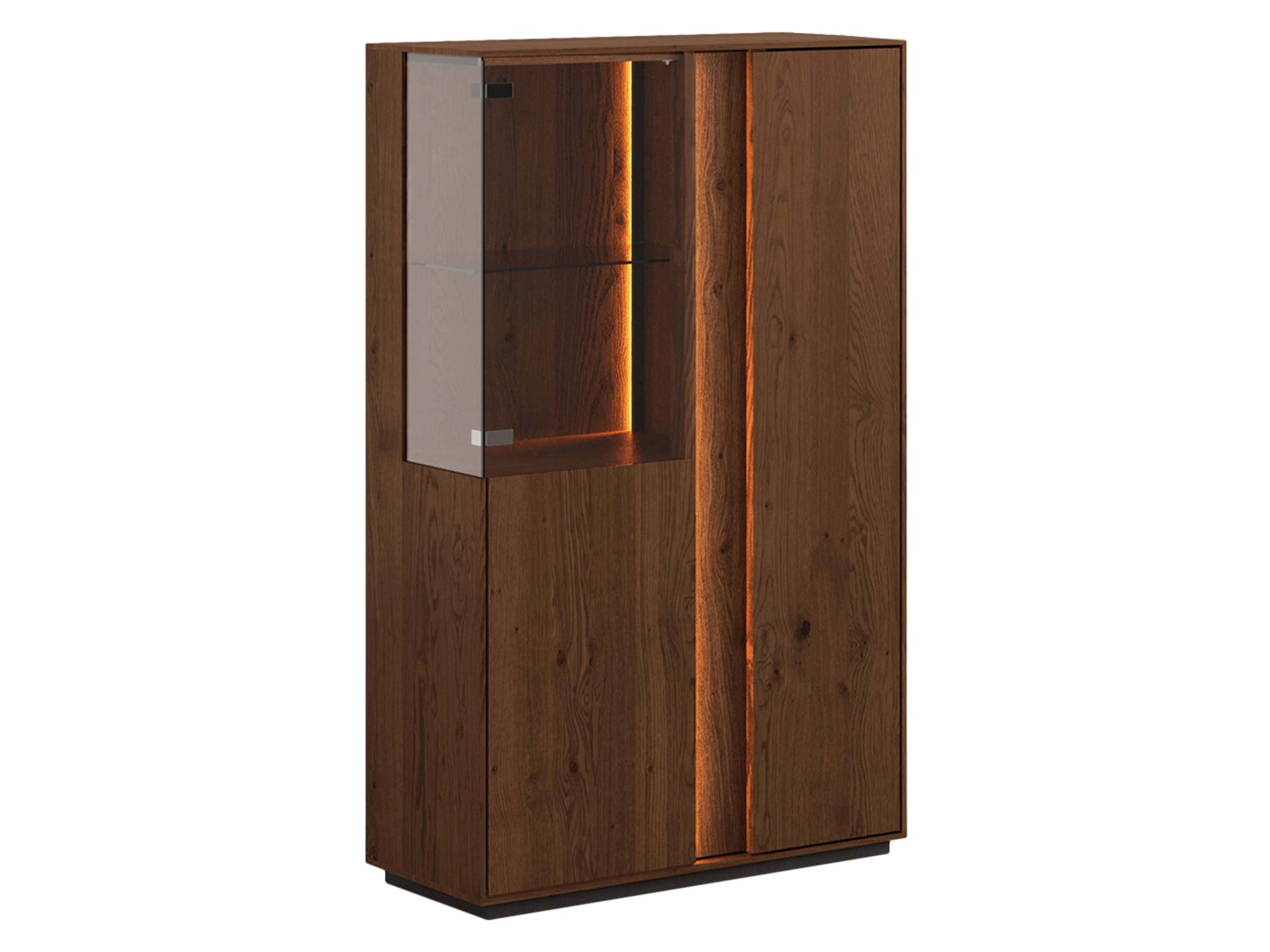 Witryna Essentia to połączenie prostoty i szlachetności. Jej naturalny dąb dziki w odcieniu tabacco zachwyca niepowtarzalnym rysunkiem słojów, dzięki czemu każdy egzemplarz staje się małym dziełem sztuki natury. Olejowana powierzchnia podkreśla głębię drewna, chroni je przed codziennym użytkowaniem i sprawia, że dotyk tego mebla to prawdziwa przyjemność.