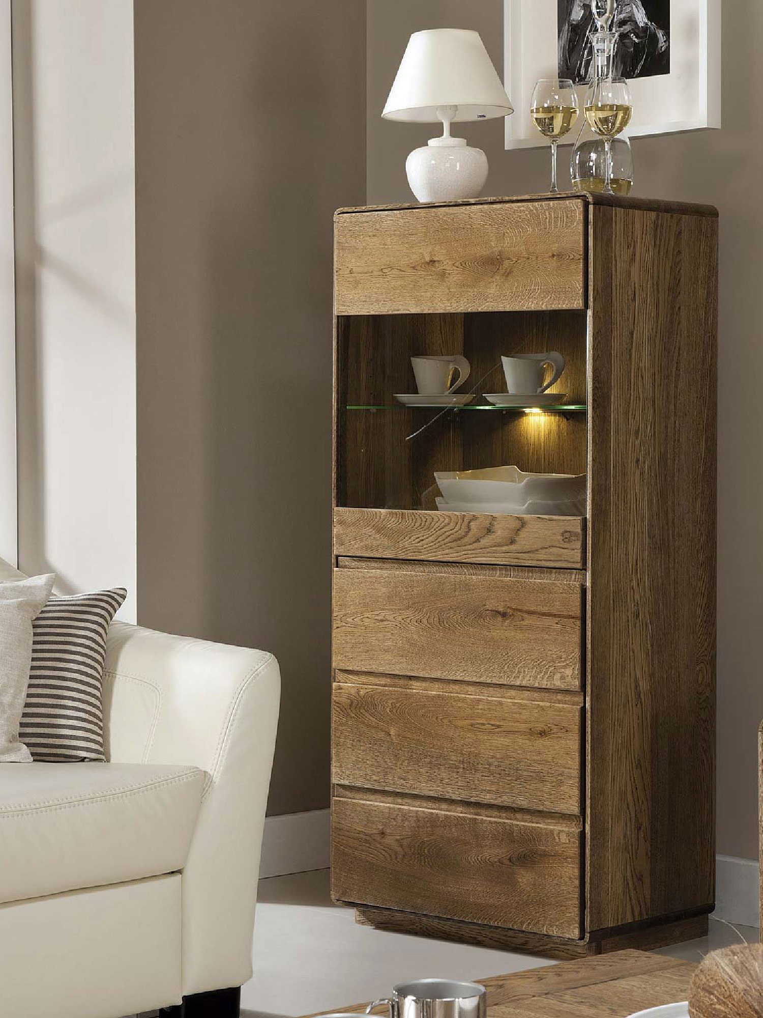 Słupek Tacoma jest prawostronną perłą designu, która wpisuje się w potrzeby nowoczesnych wnętrz, stanowiąc ich eleganckie uzupełnienie. Jego zaokrąglone kształty i frezowane krawędzie nadają lekkości i subtelności, a szczotkowane wykończenie frontu, podkreślające głębię słojów i struktur drewna, dodaje meblowi niepowtarzalnego charakteru. Kolekcja Tacoma, dostępna w dwóch wybarwieniach – dębie naturalnym i dębie palonym, pozwala na idealne dopasowanie do indywidualnych preferencji i stylu wnętrza.