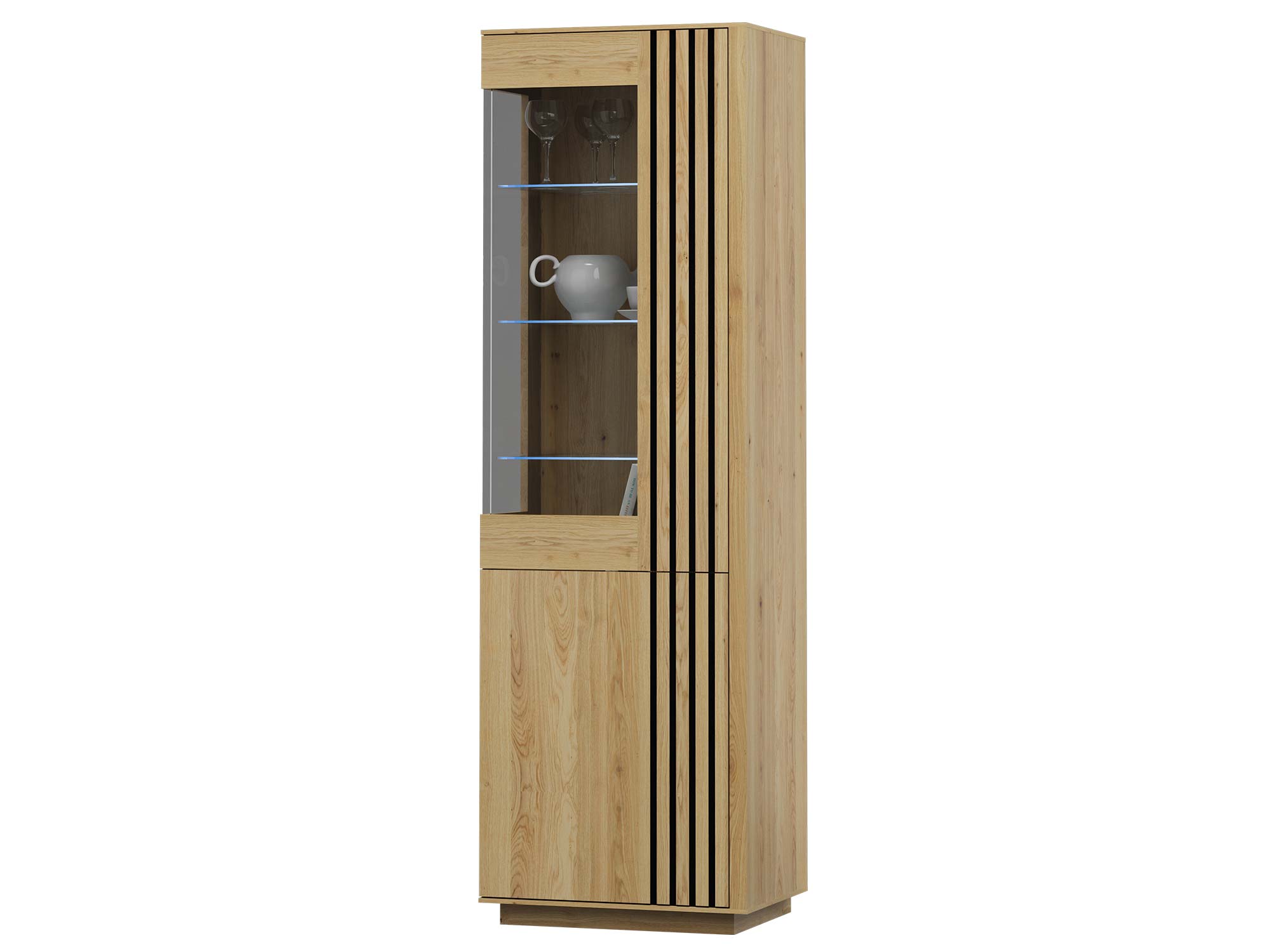 Witryna 2D lewa Dorello to kwintesencja nowoczesnego designu połączonego z elegancją, która wnosi do wnętrza harmonię i styl. Smukła, wysoka forma sprawia, że doskonale prezentuje się zarówno w salonie, jadalni, jak i w sypialni. Ryflowane fronty przyciągają uwagę swoją fakturą, a przeszklone elementy dodają całości lekkości, czyniąc z witryny prawdziwą ozdobę domu. To mebel, który nie tylko ułatwia przechowywanie, ale także eksponuje piękno Twoich ulubionych dekoracji, porcelany czy szkła.