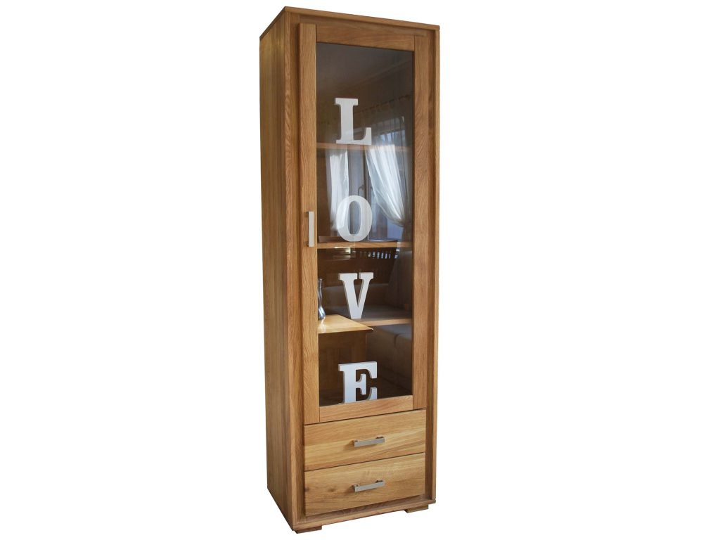Zaprezentowana witryna dębowa wąska PAROS to mebel o świetnym wyglądzie, a zarazem wysokiej jakości wykonania. Co więcej ta masywna i stabilna witryna wykonana z litego drewna dębowego olejowanego pomieści wiele rzeczy codziennego użytku dając jednocześnie gwarancję bezpieczeństwa ich przechowywania. Wygląd danego modelu bardzo dobrze wpasuje się zarówno w tradycyjną jak i nowoczesną aranżację wnętrza. A naturalny kolor mebla pozwoli Ci stworzyć wyjątkowy, przytulny nastrój.