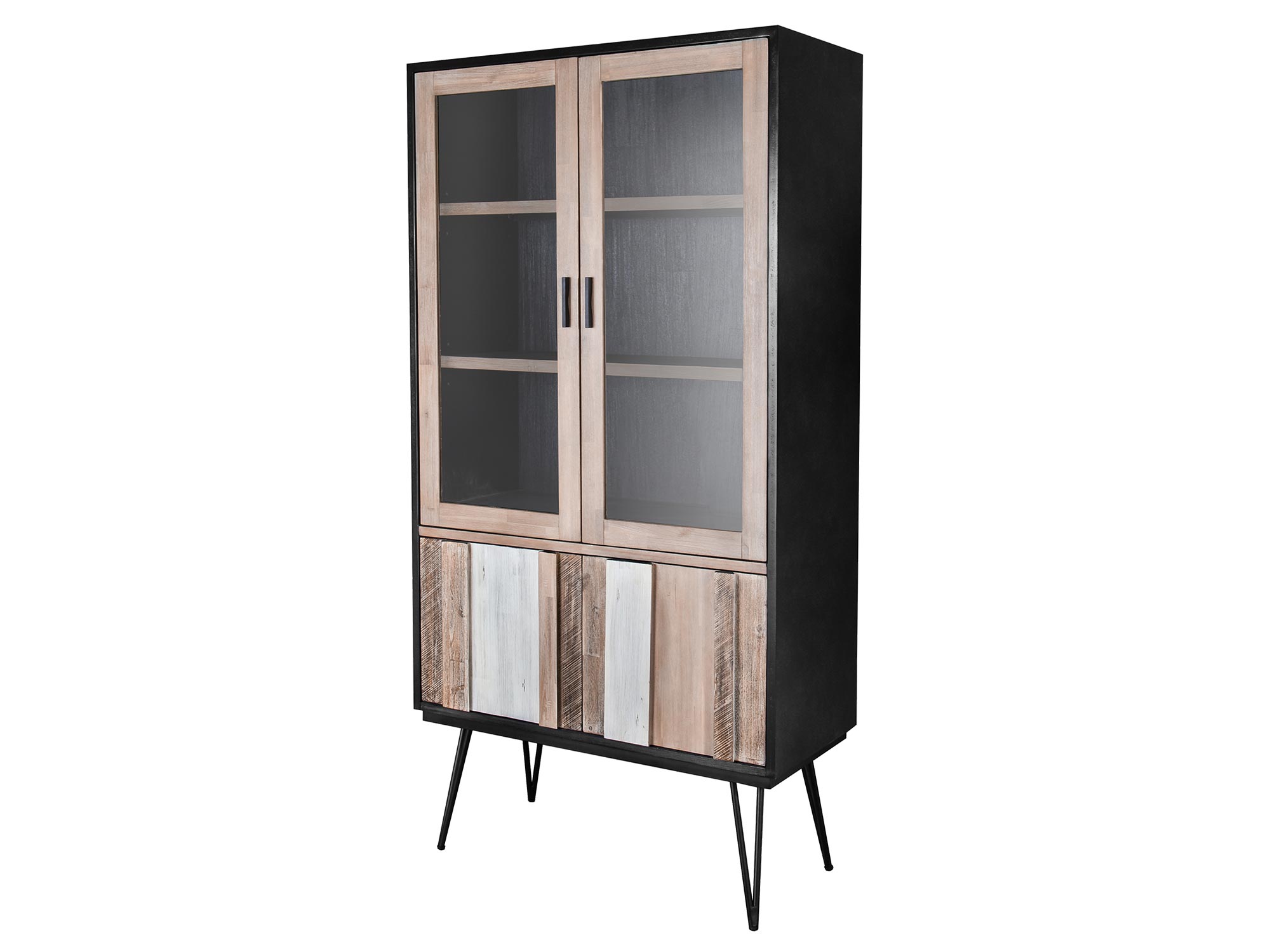 Witryna Mondo to wyjątkowy mebel w stylu retro, który łączy w sobie elegancję i nowoczesny design. Oryginalne fronty wykonane z litego drewna akacji wyróżniają się strukturą 3D, która nadaje im niepowtarzalny, trójwymiarowy efekt. Różnorodność odcieni drewna oraz faktura powierzchni sprawiają, że witryna staje się centralnym punktem każdej przestrzeni. Dzięki metalowym nogom w kolorze czarnym oraz doskonale dobranym proporcjom, mebel wpasowuje się zarówno w klasyczne, jak i nowoczesne wnętrza. Witryna doskonale sprawdzi się w salonie, jadalni lub biurze, jako elegancki element dekoracyjny.