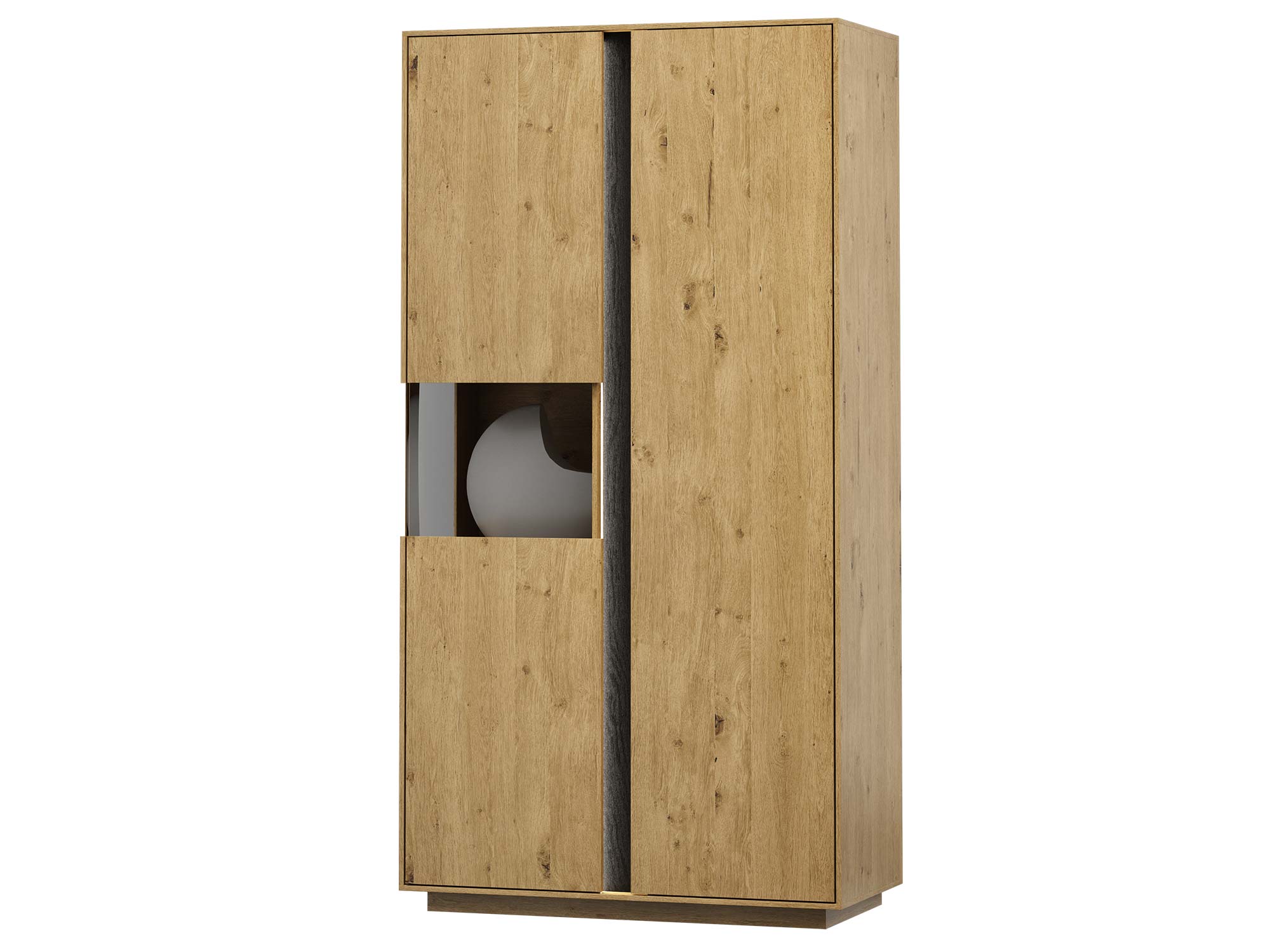 Wykończenie w kolorze dąb dziki doskonale podkreśla naturalne piękno drewna, a dzięki zastosowaniu naturalnej okleiny z elementami litego drewna witryna prezentuje się wyjątkowo autentycznie. Prosta bryła została uzupełniona o nowoczesny system push to open, dzięki któremu otwieranie drzwi jest wygodne, a całość pozostaje idealnie minimalistyczna – bez uchwytów i zbędnych dodatków.