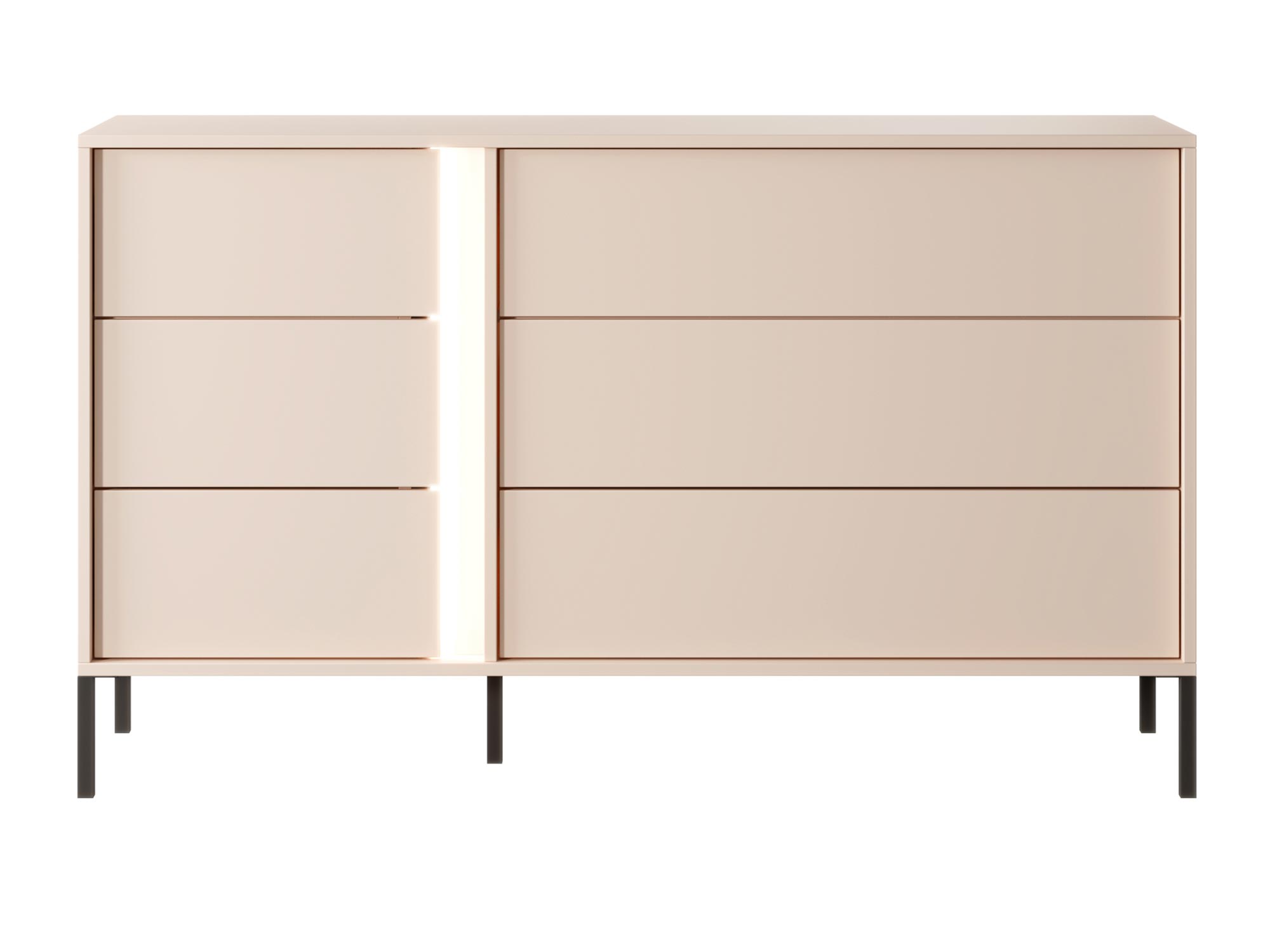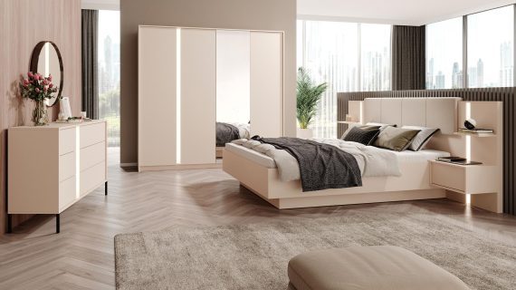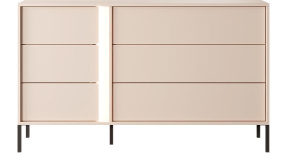 Zestaw Mebli do Sypialni Solezza zdobędzie Twoje serce dzięki prostym, bezuchwytowym bryłom i subtelnej, beżowej kolorystyce. Ponadto, oryginalne, pionowe podświetlenia LED dodają wnętrzu nowoczesnego charakteru. Meble te nie tylko wyglądają pięknie, ale także są bardzo praktyczne i funkcjonalne.