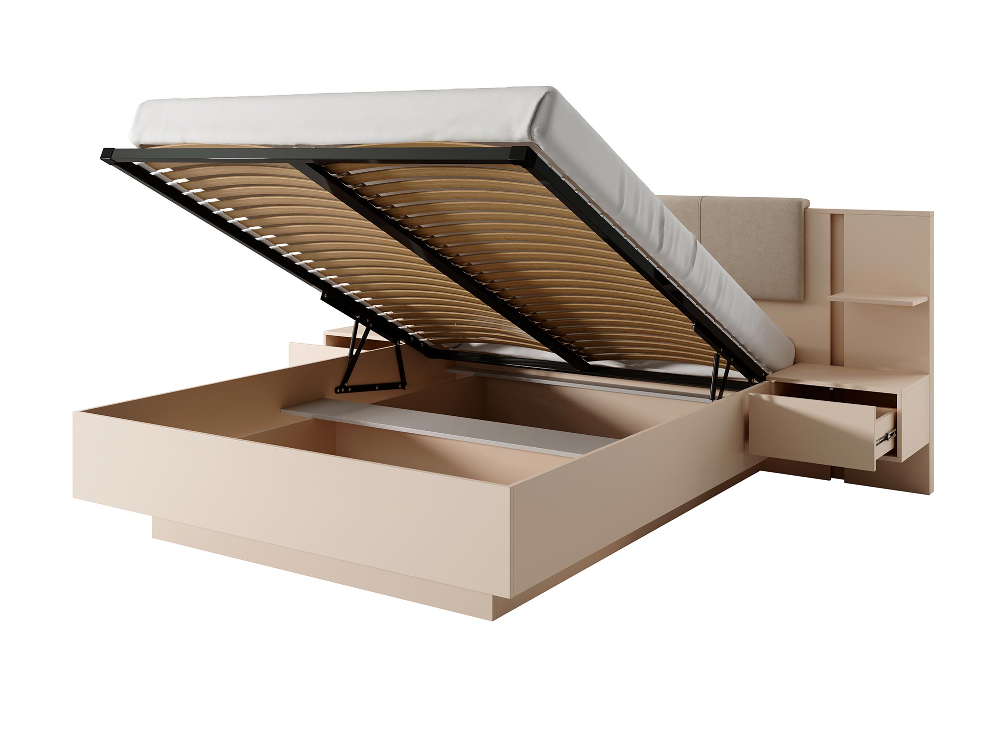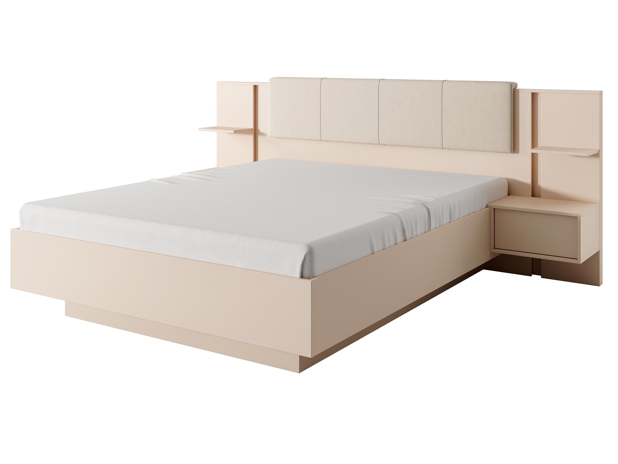 W skład zestawu wchodzi przestronna szafa z dużym lustrem, praktyczna komoda oraz funkcjonalne łóżko, wyposażone w ozdobne wezgłowie, stoliki nocne, półki i oświetlenie. Dzięki temu zestawowi Twoja sypialnia stanie się miejscem, w którym będziesz chętnie spędzać czas.