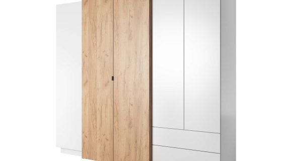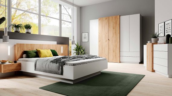 Zestaw Mebli Mails Sypialnia to doskonałe połączenie nowoczesnego designu i praktycznych rozwiązań. Dzięki harmonii drewnianych, naturalnych akcentów złotego dębu oraz bieli, meble te wprowadzają do sypialni przytulny, ciepły klimat. Ponadto, prostota i oryginalność formy brył umożliwiają ciekawą aranżację przestrzeni, idealną dla nowoczesnych wnętrz. Dodatkowo, zestaw zawiera wszystkie niezbędne elementy, by stworzyć funkcjonalną i stylową sypialnię.