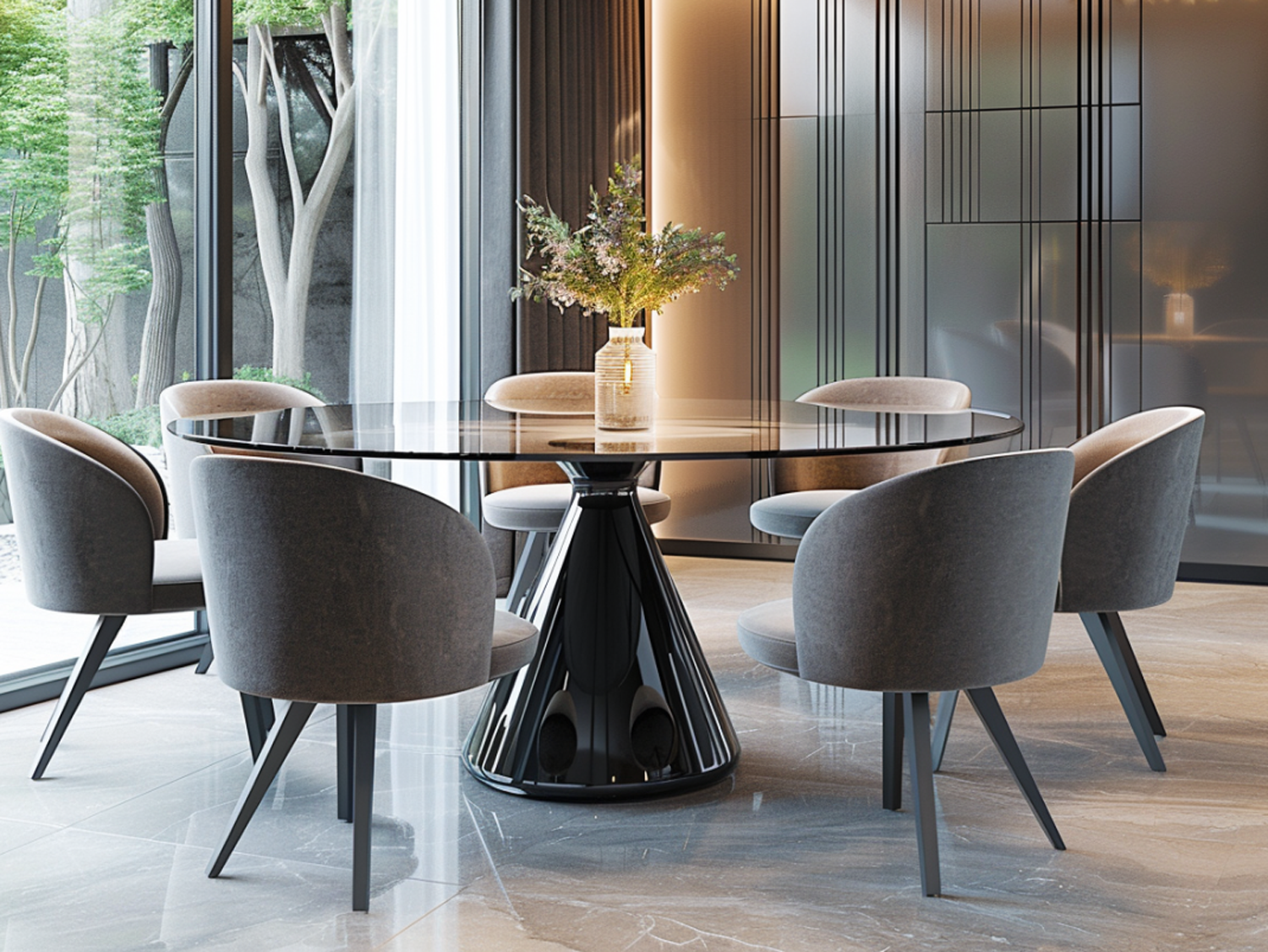 - Optyczne powiększenie przestrzeni: Wybór stołu o niestandardowym, zaokrąglonym kształcie może optycznie powiększyć jadalnię, szczególnie gdy zostanie on umieszczony w dobrze oświetlonym centrum wnętrza.