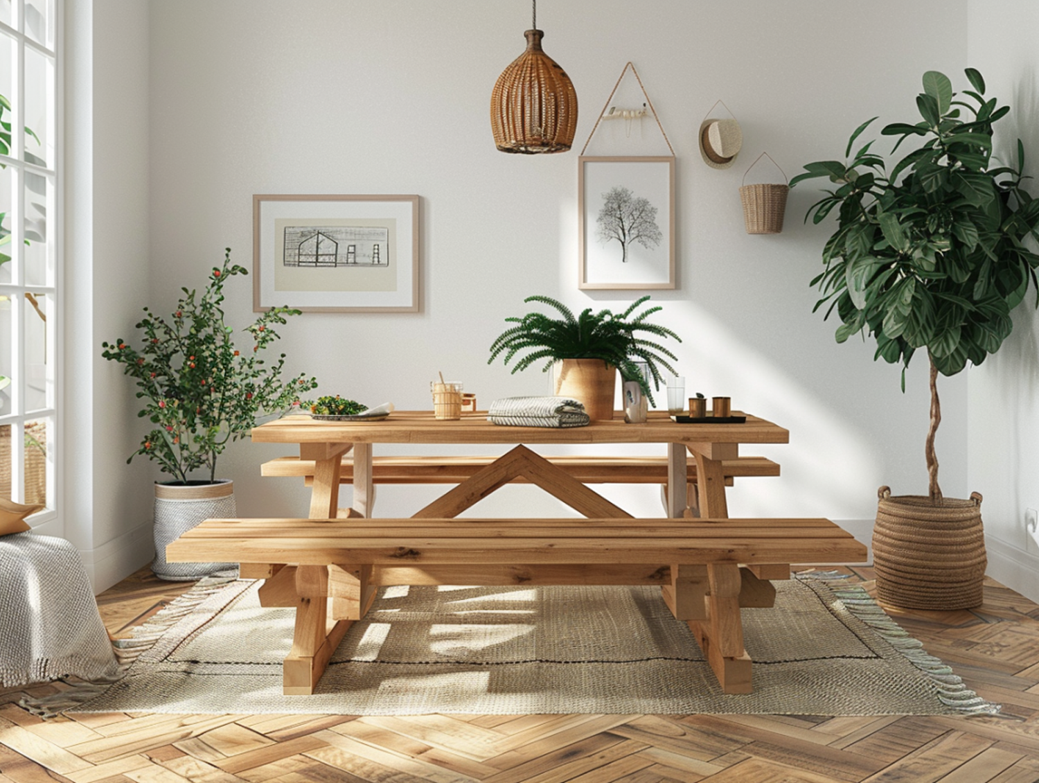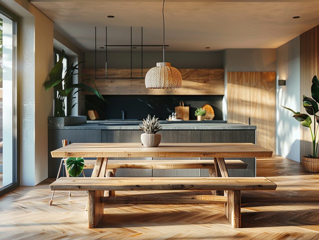 Stoły ze zintegrowaną ławą świetnie komponują się z różnymi stylami wnętrz, dlatego warto zadbać o odpowiednie dodatki, które podkreślą ich walory: